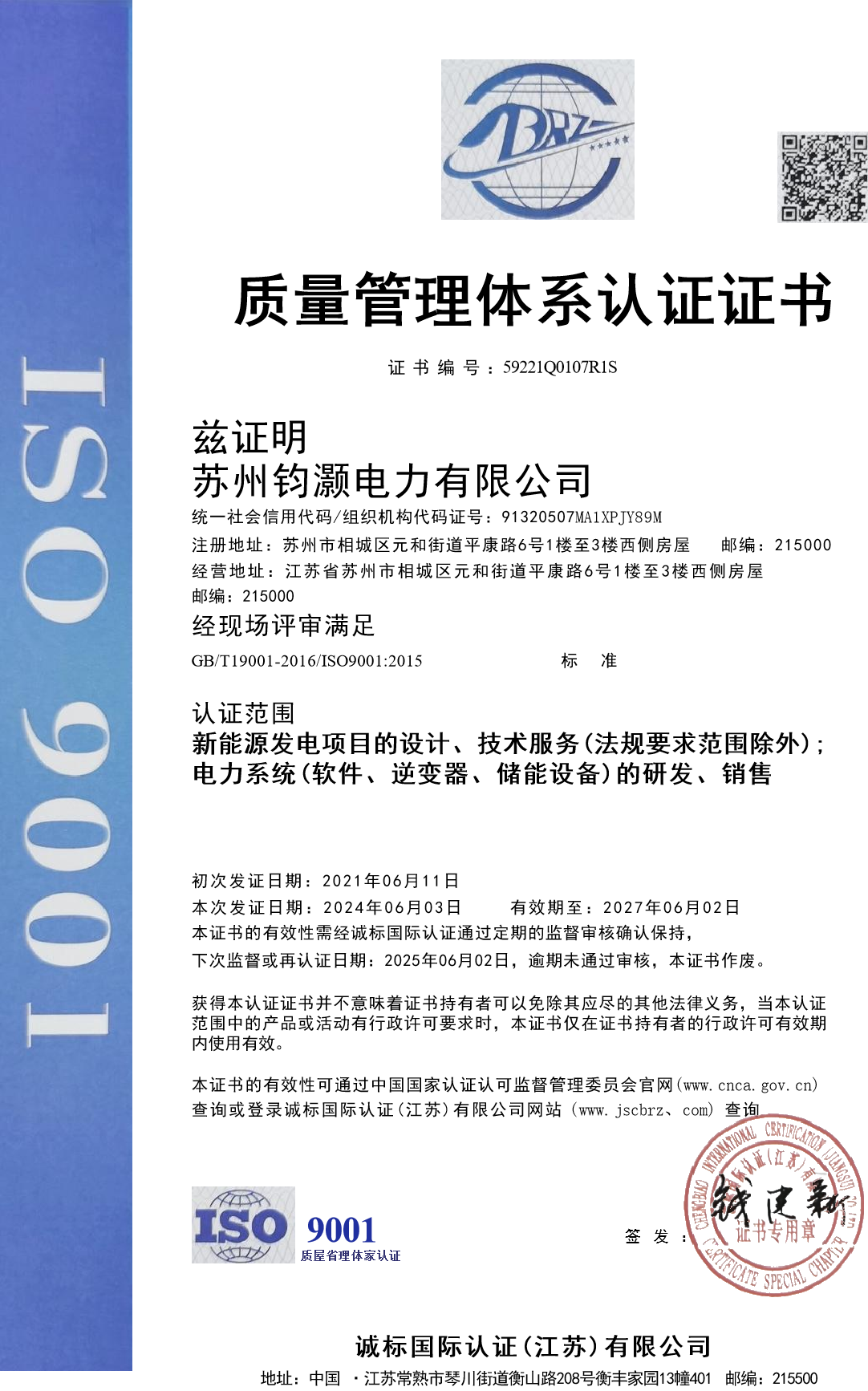质量管理体系证书